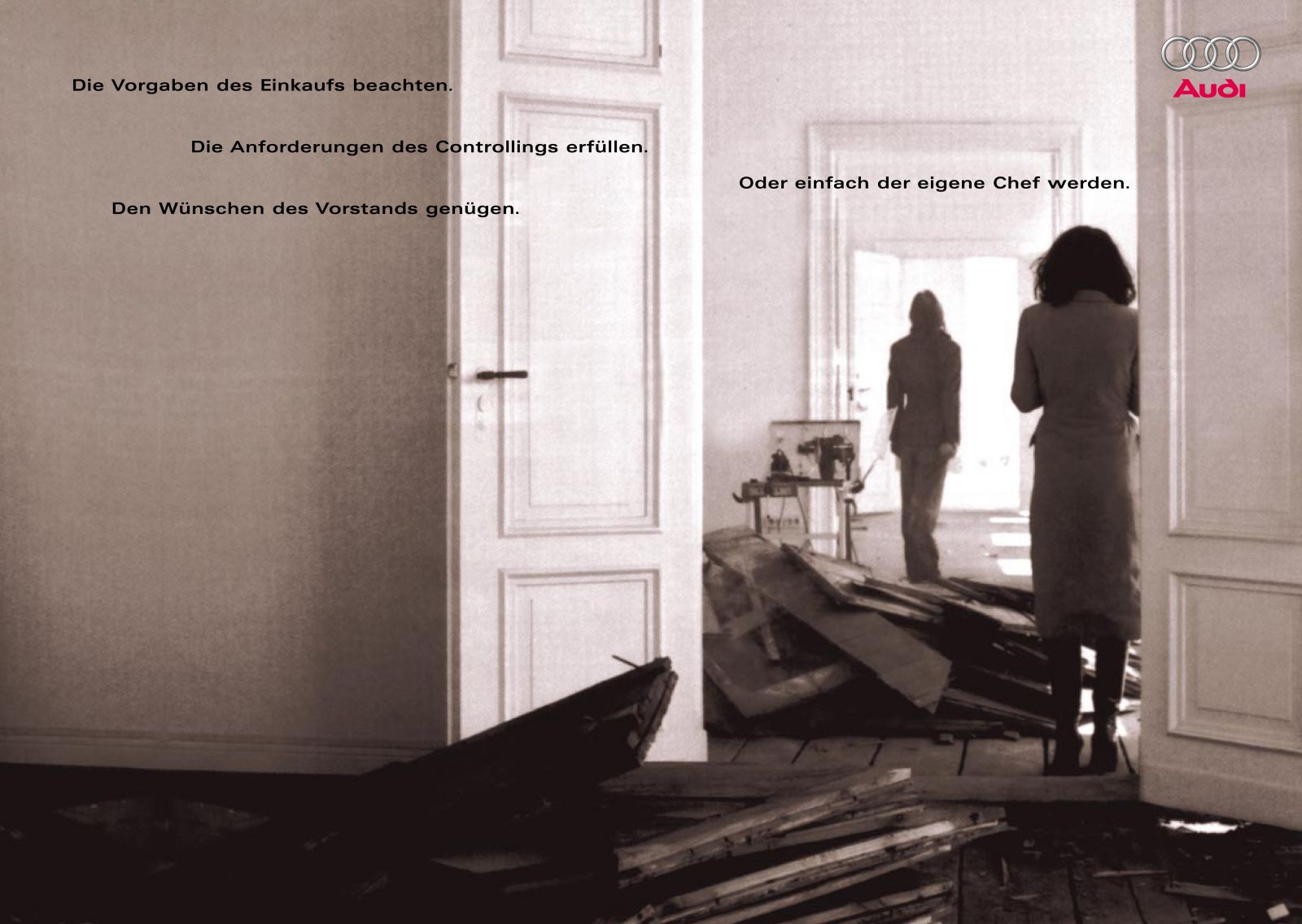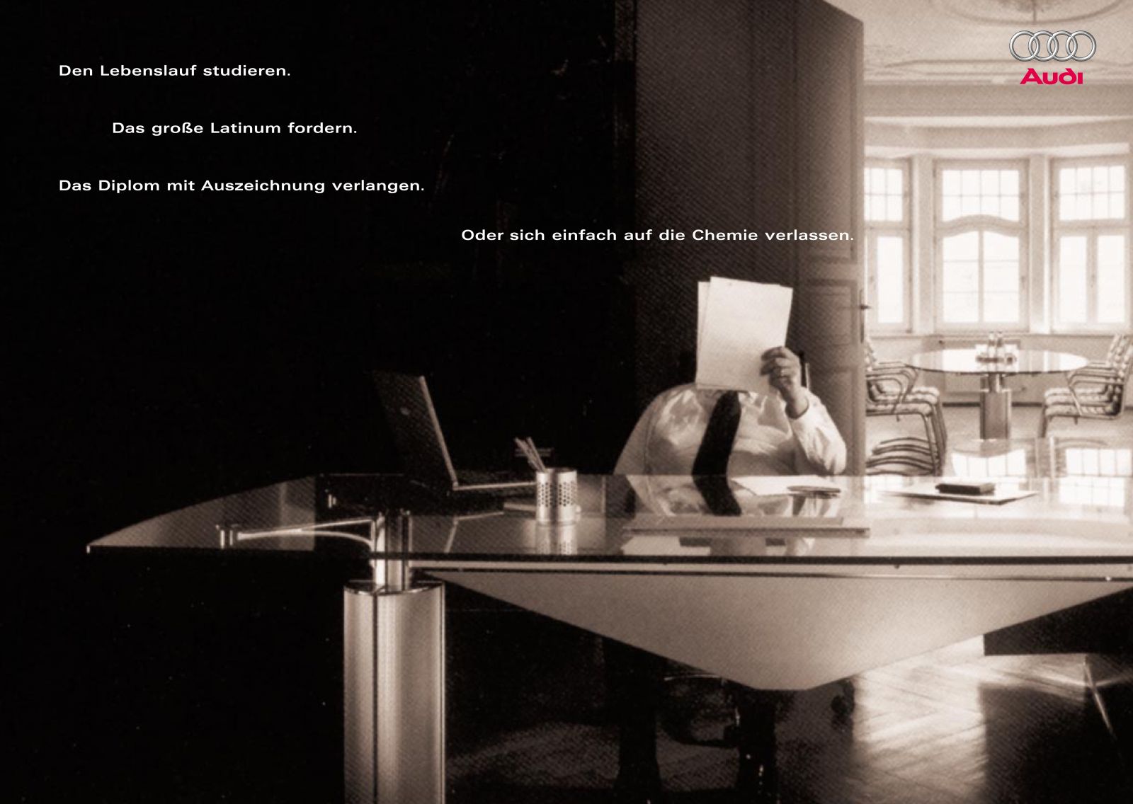 Agentur: Saatchi & SaatchiText: Eva Kinkel-WilkensKunde: AUDI, Audi A6 Print-Kampagne "Nach eignen Regeln"